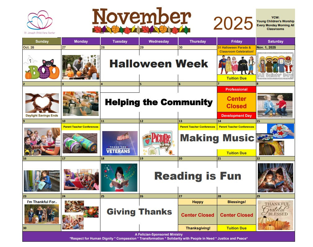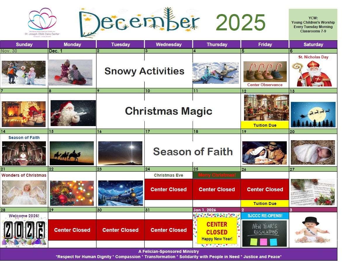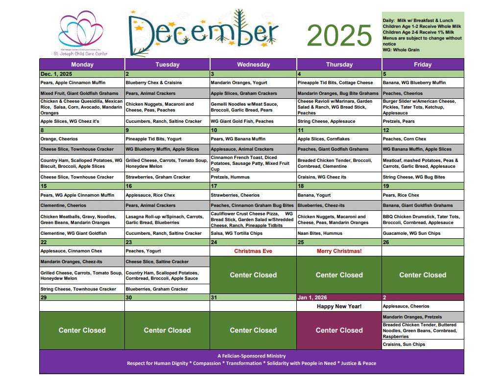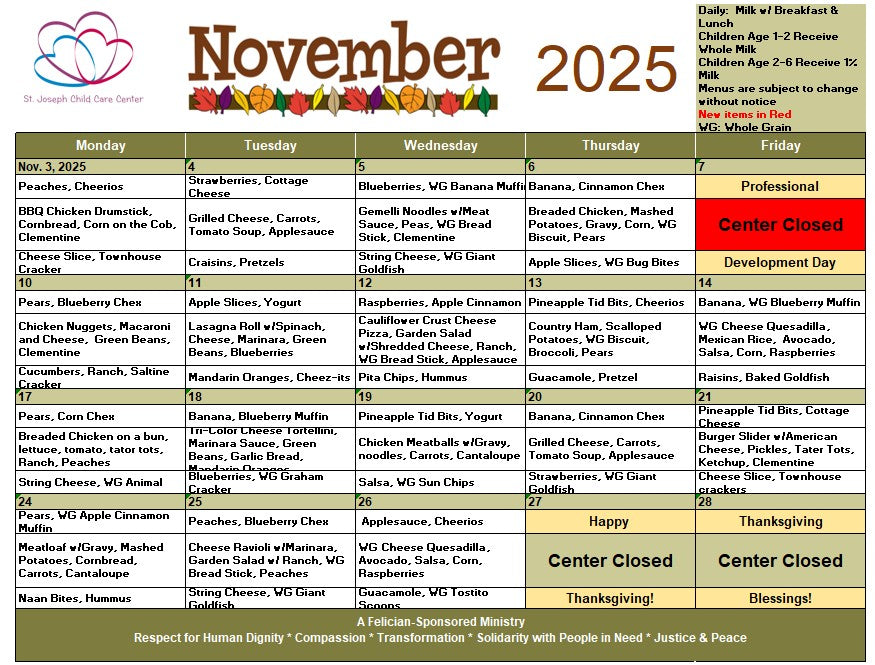 The safety, well being and comfort of your child is our main priority. At St. Joseph Child Care Center, we believe children thrive in a safe and secure environment. Our staff is trained to ensure your child is safe, nurtured and educated.